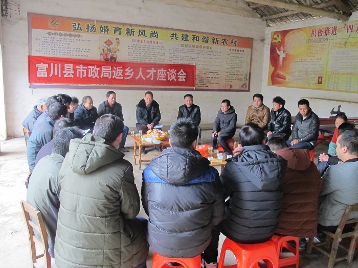 为架起城市与农村沟通的桥梁,增进外出务工人员对家乡建设的了解与支持,2018年2月22日县市容市政管理局在富阳镇竹稍村召开返乡人才座谈会,让返乡人士对家乡的建设各抒己见。参加座谈会的有在外打工返乡人员、经商办企业人员、返乡党员、村两委班子等。